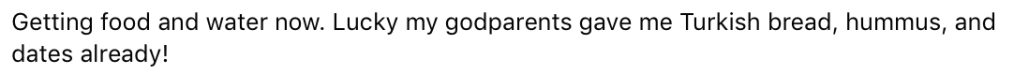 CRISP group tip number nine maybe: Turkish bread and hommus for the win. Probably for a huge swathe of nations. [Edit: I found out later they don’t like hummus at all. Way to buck the stereotypes, you guys.]