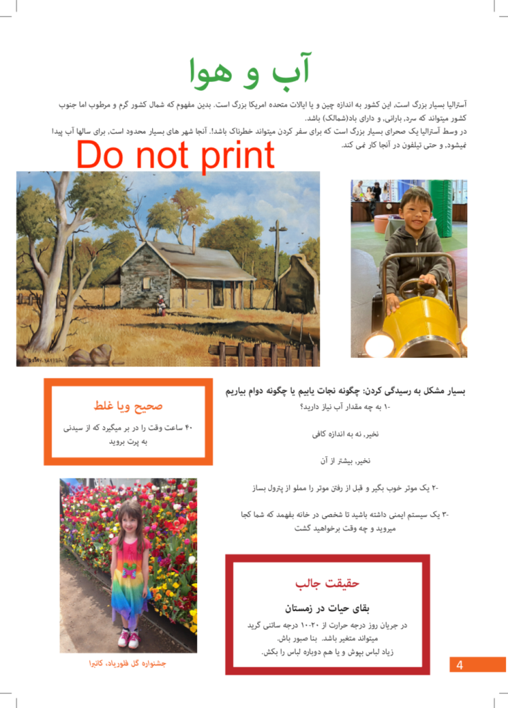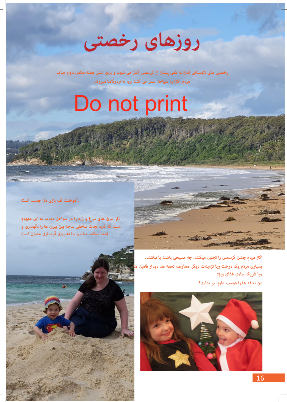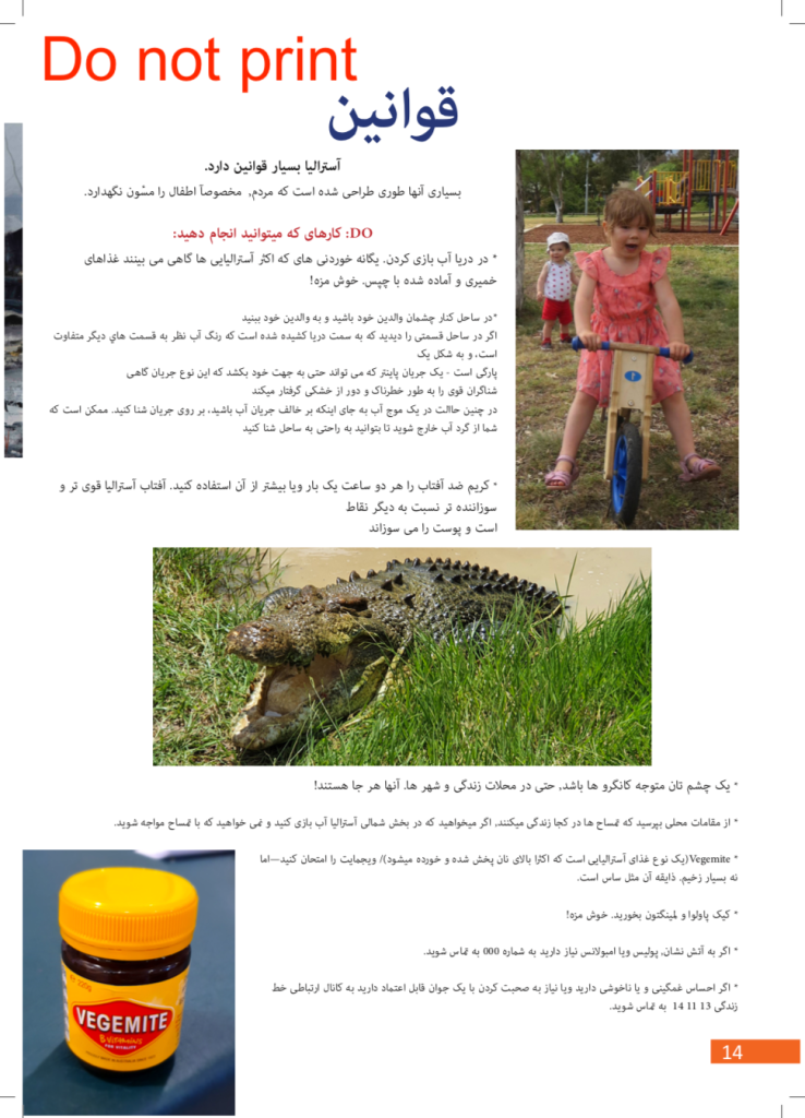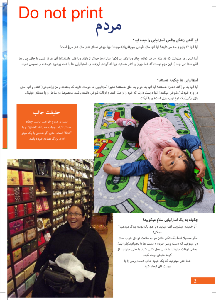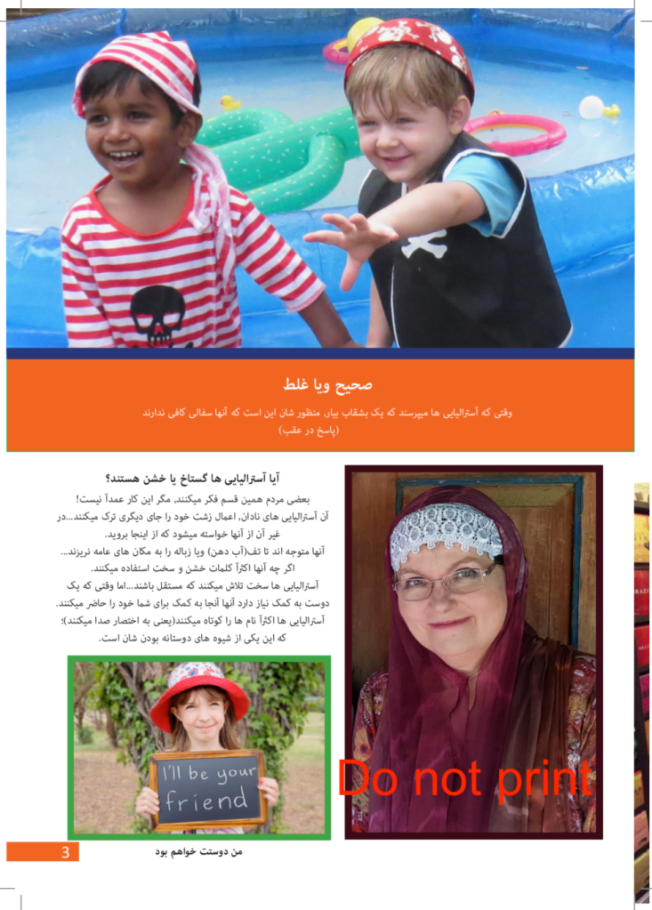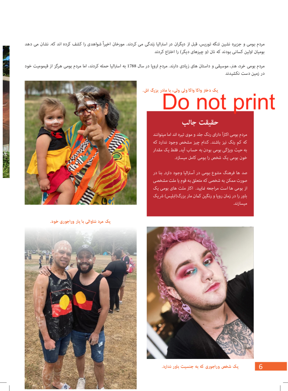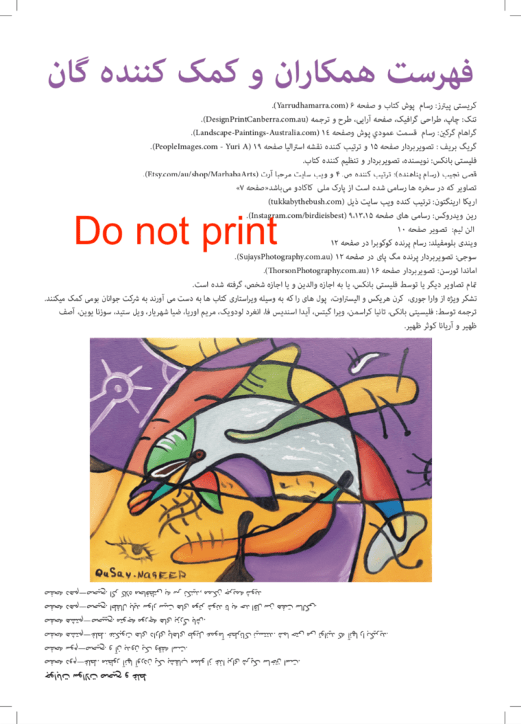 All I ask is that you don’t make a profit from any part of it. Dozens of people spent time working on this book, and most were not paid (all Aboriginal people and refugees were paid or had donations made in their name).