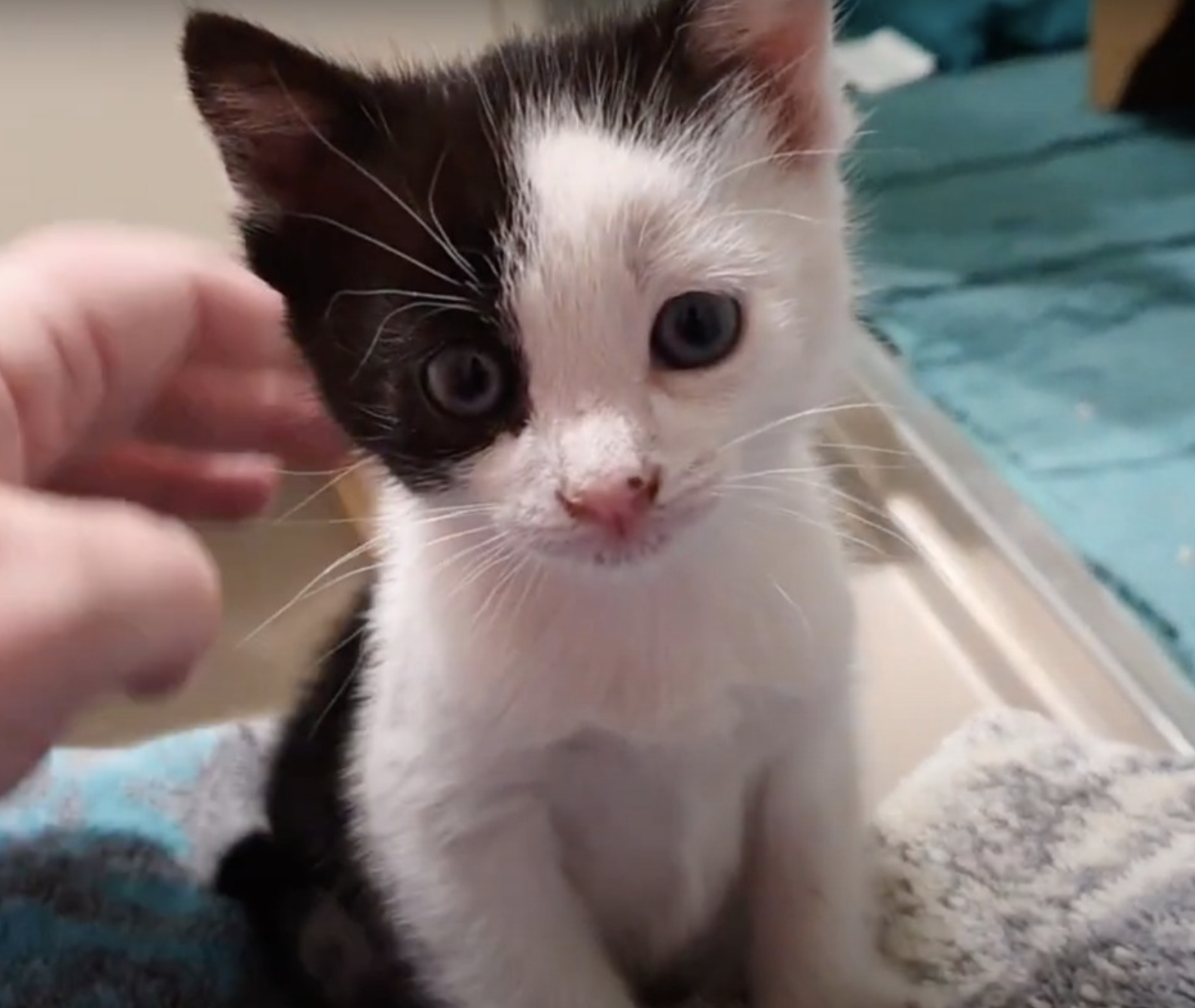 Buttons was adopted into a family of experienced and undaunted cat owners.