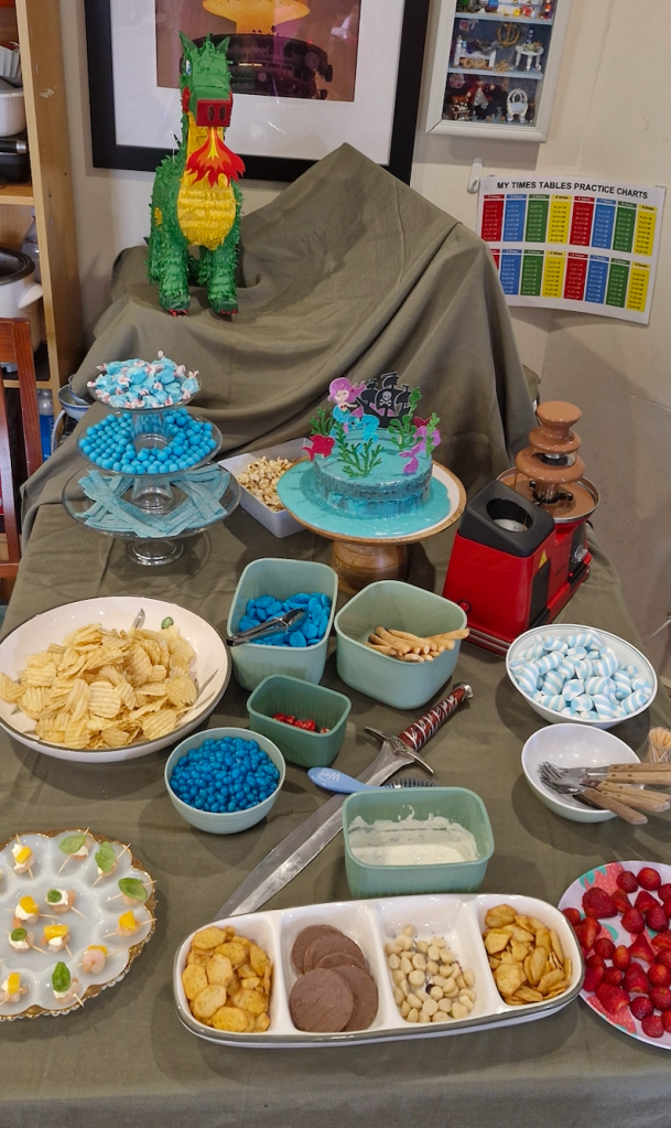 Everyone was assigned a character, and was given a piece of paper with some details including their allies etc. I’ve read the first five books (and I’m onto the second series), plus I used the Percy Jackson wiki… and Lizzie’s encyclopaedic knowledge to check details. I definitely fudged things a bit, because we ended up with a total of TWELVE kids coming to the party, which is a lot!