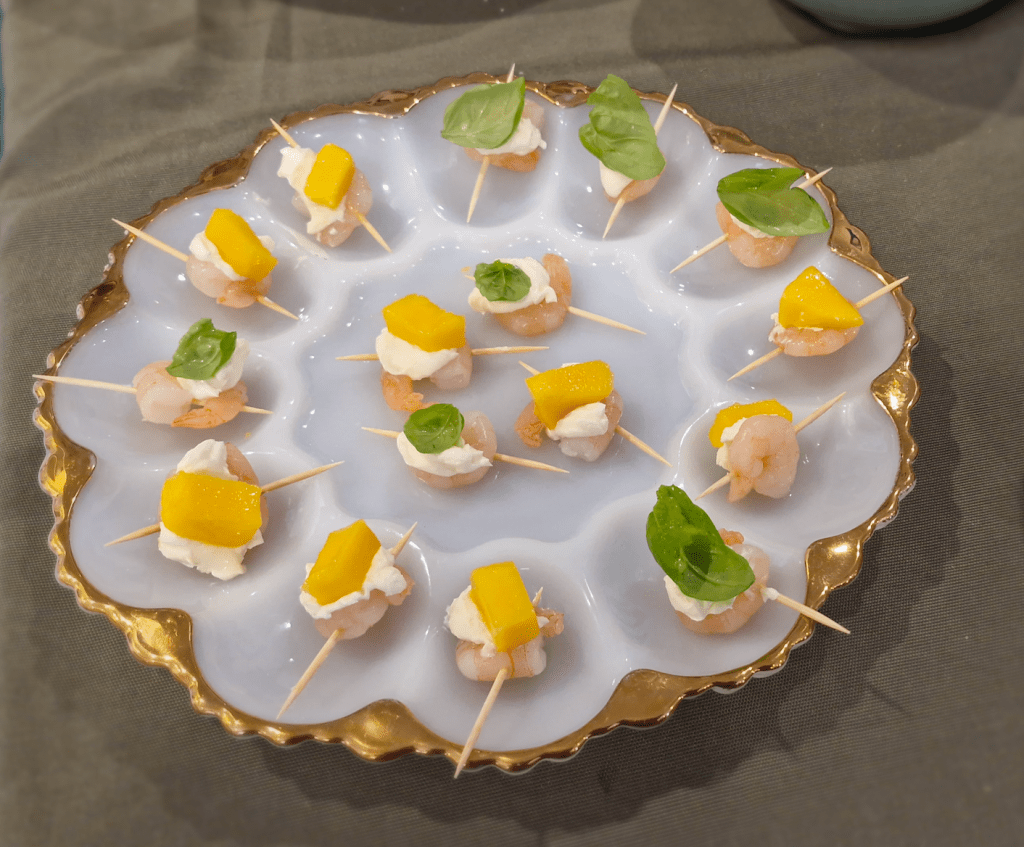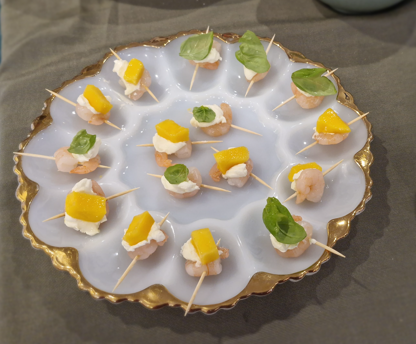 I’m personally going through a prawn-canapé phase, and of course they’re seafood so that was sufficient excuse for me to make some. Also, my mum has a devilled-egg plate and I wanted to see how canapés go in it (great, except they tend to want to slide around—they’d work better on cucumber slices or basil leaves).