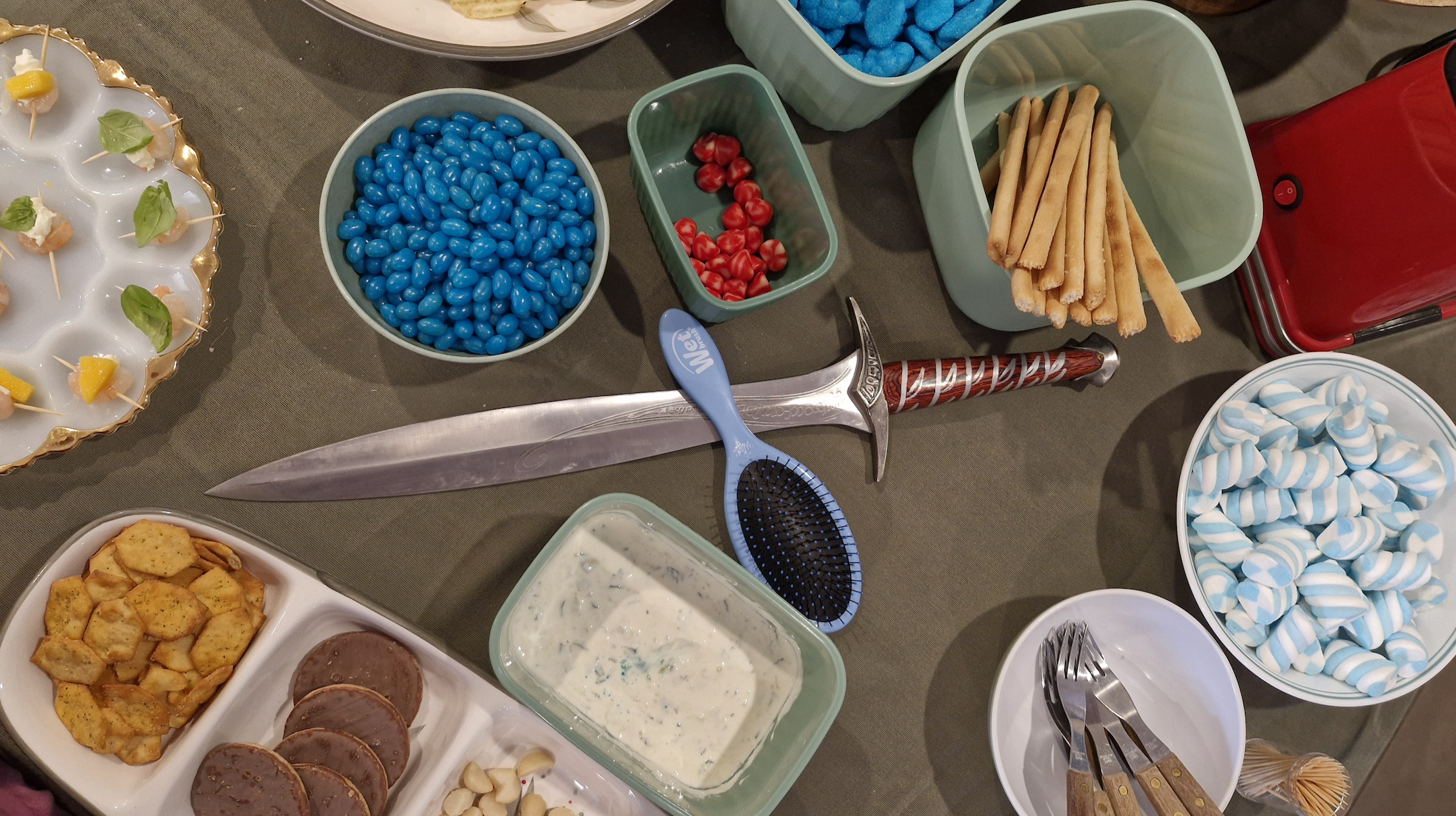 Percy Jackson loves blue food, and is a son of Poseidon (so he’s very connected to the sea). Therefore, the first thing I did was order a bunch of blue lollies online, from Lolly Warehouse who (unfortunately?) provides lollies in bulk. I also ordered about six books from Lizzie’s wish list, and when people asked what to get her I had books ready to give them, which was what Lizzie wanted most. She is also getting a Camp Half-Blood T-Shirt (which I was very anxious to acquire as she was given a “Wise Girl” T-shirt for Christmas and she literally hasn’t worn a different shirt since then! I really want to wash it!)