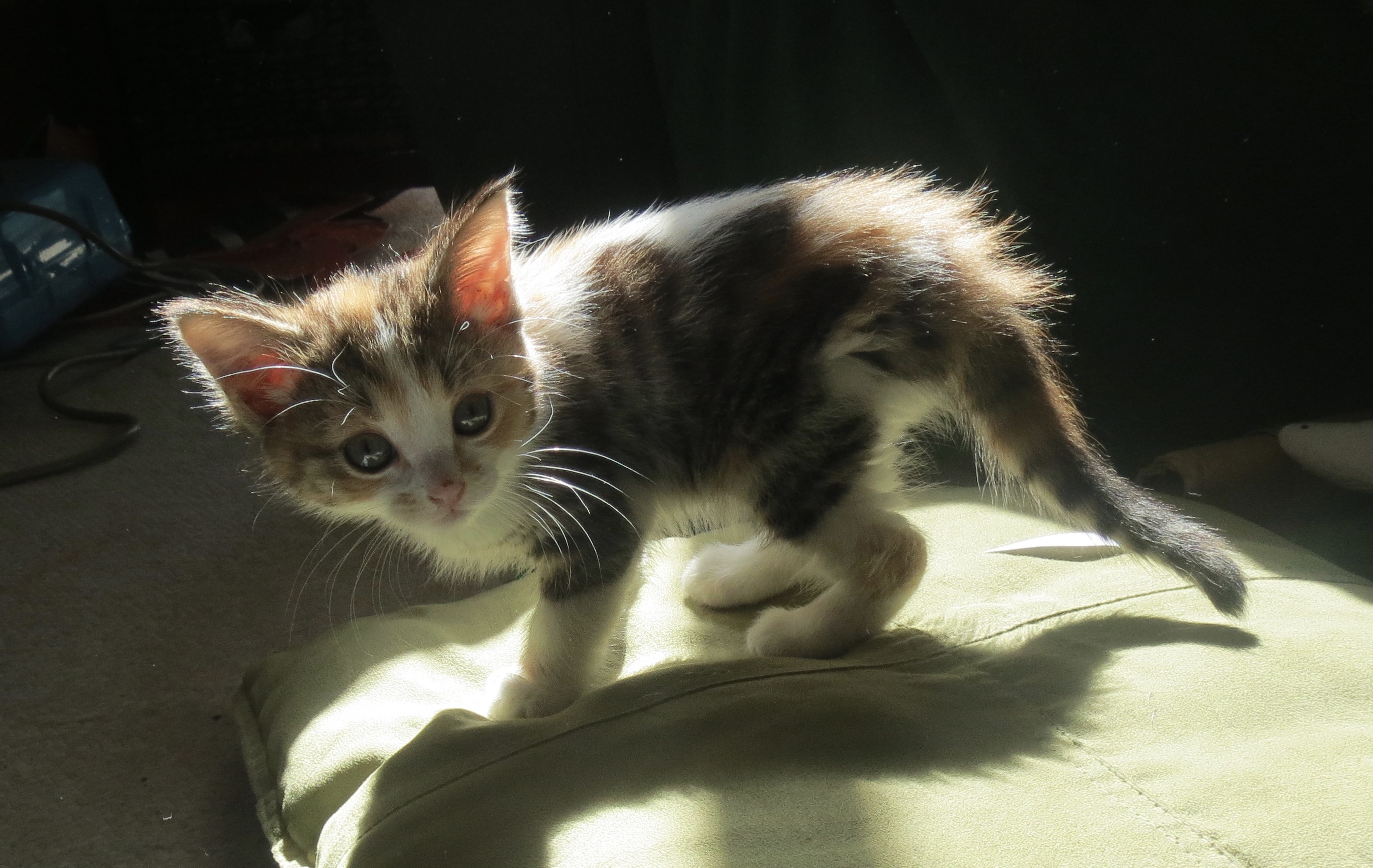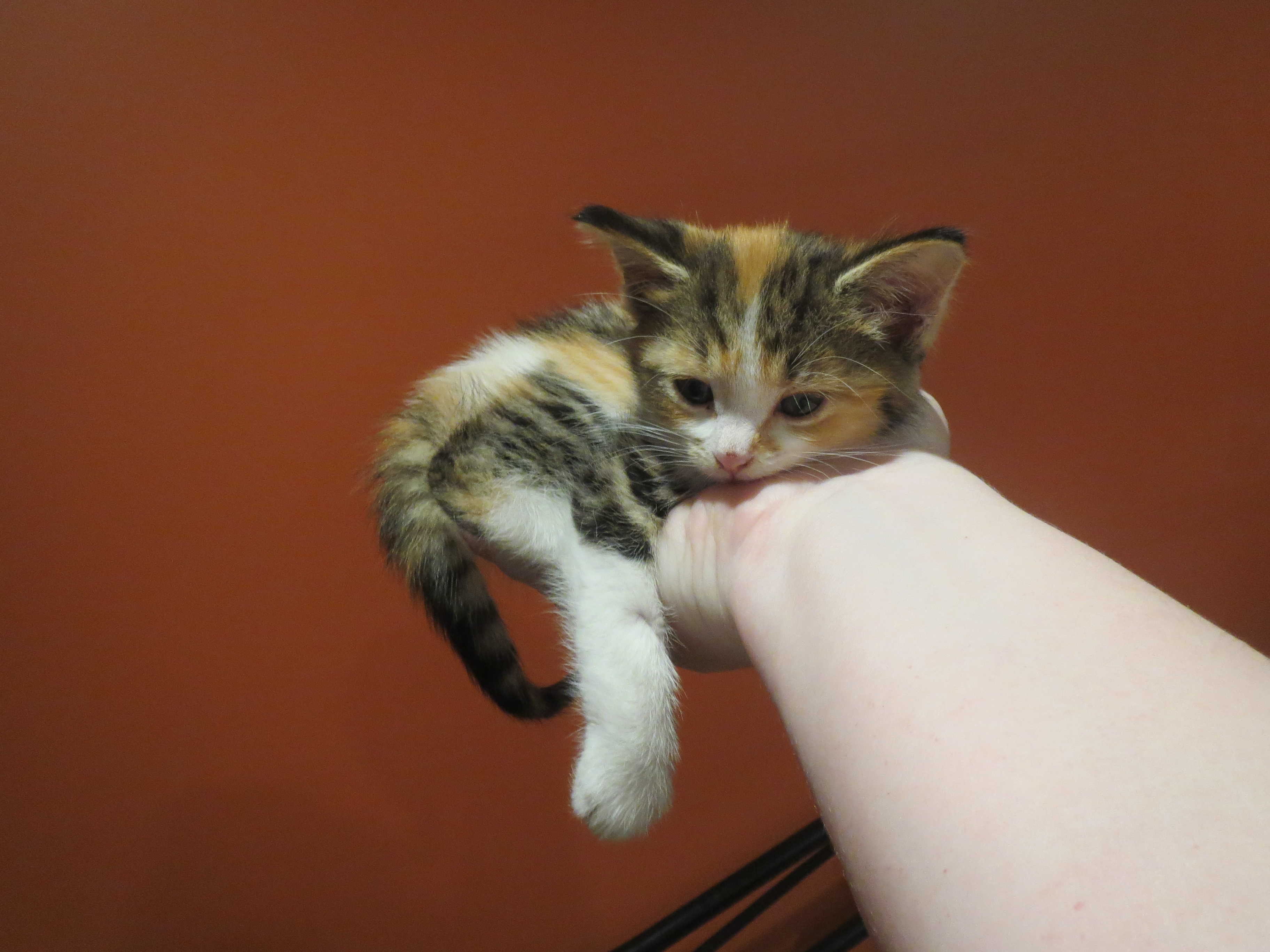 The owners will try to catch more tomorrow, and my nephew and Lizzie and I shall return on Wednesday. Buttons (our previous foster kitten) was unlucky enough to be an only child (or possibly an only surviving child), which is unhealthy for kittens and the main reason we couldn’t train Buttons to stop biting so much.