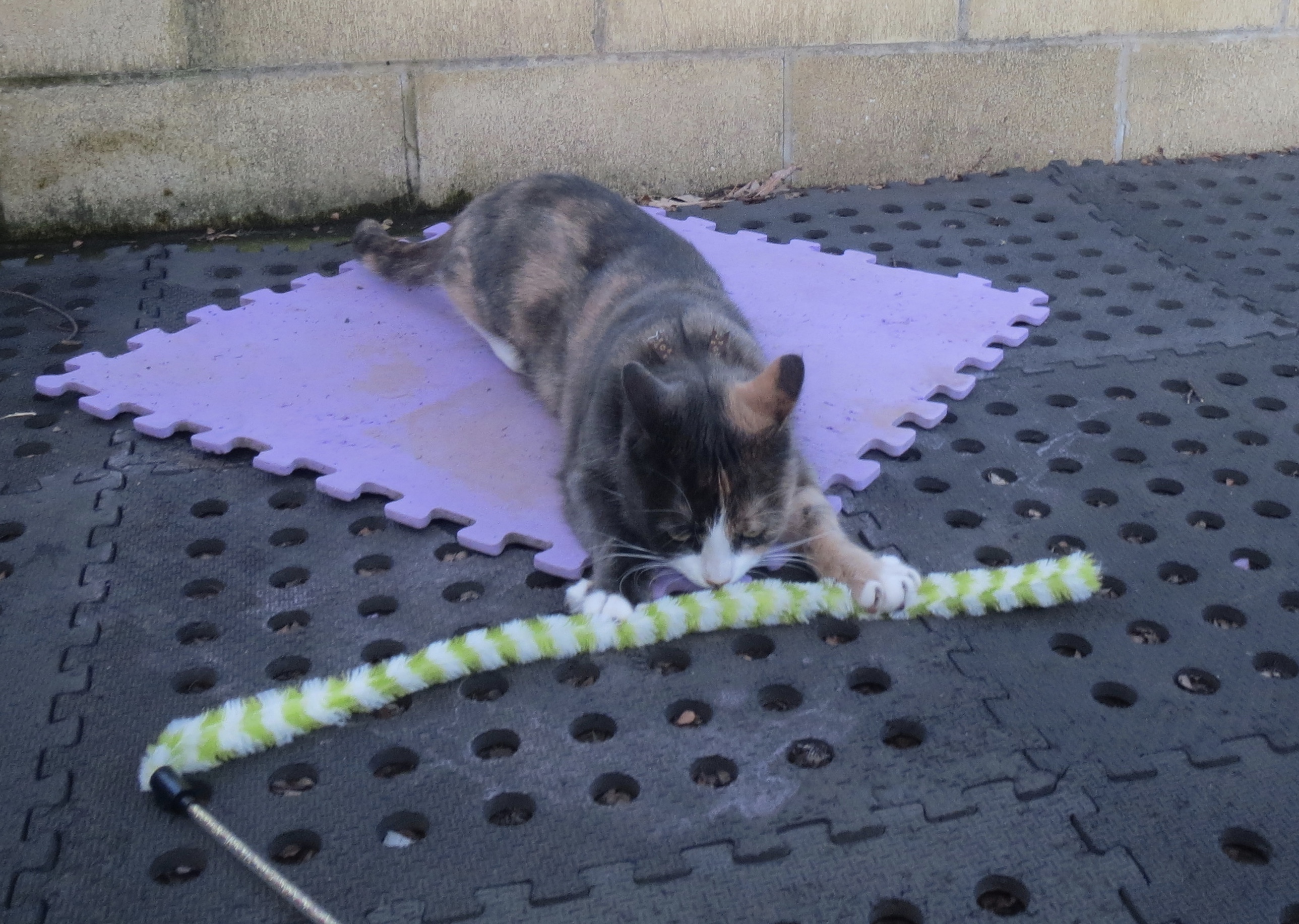 Zipper also had a good play with one of the toys—an exact copy of one she had as a young kitten.