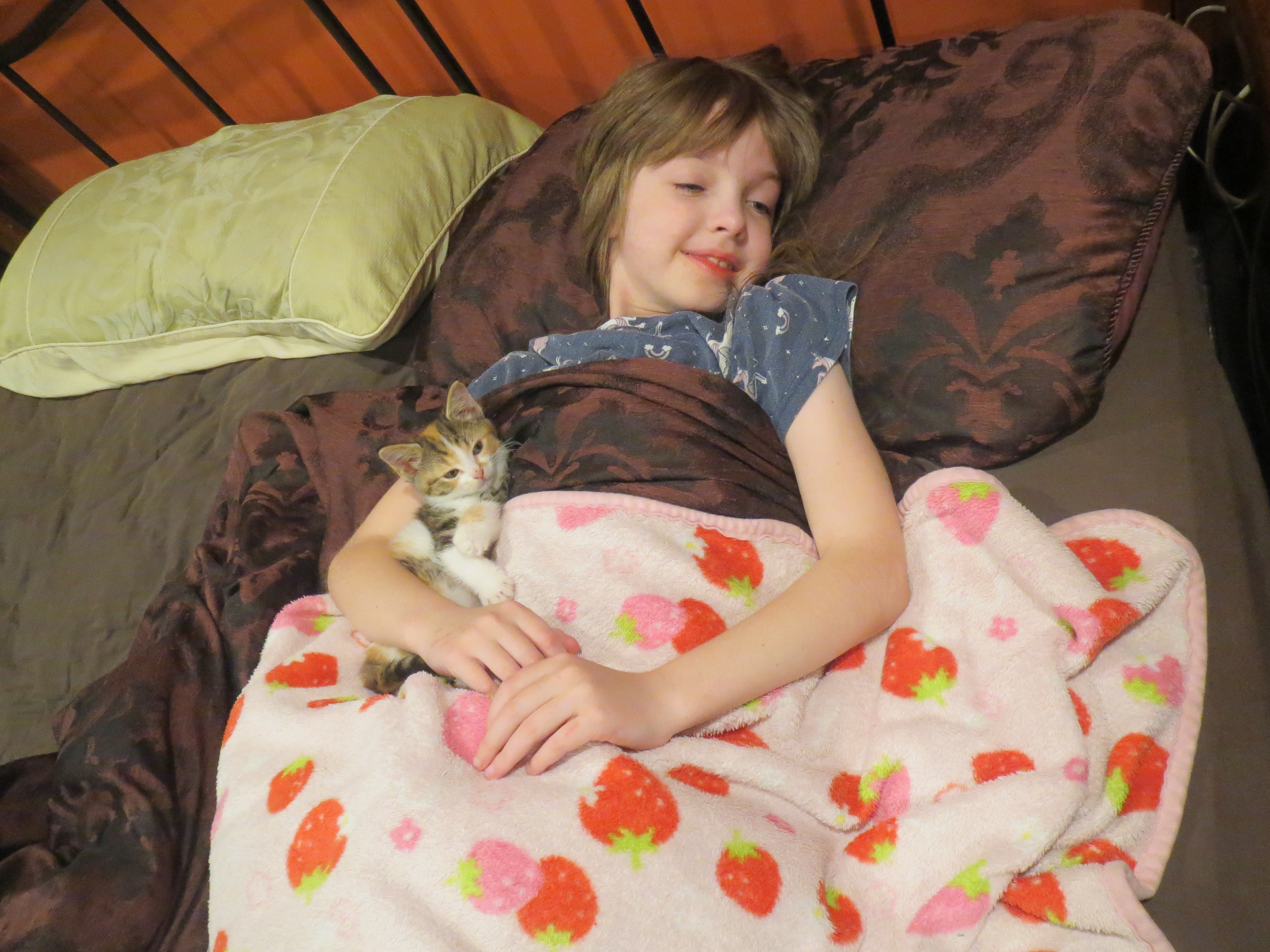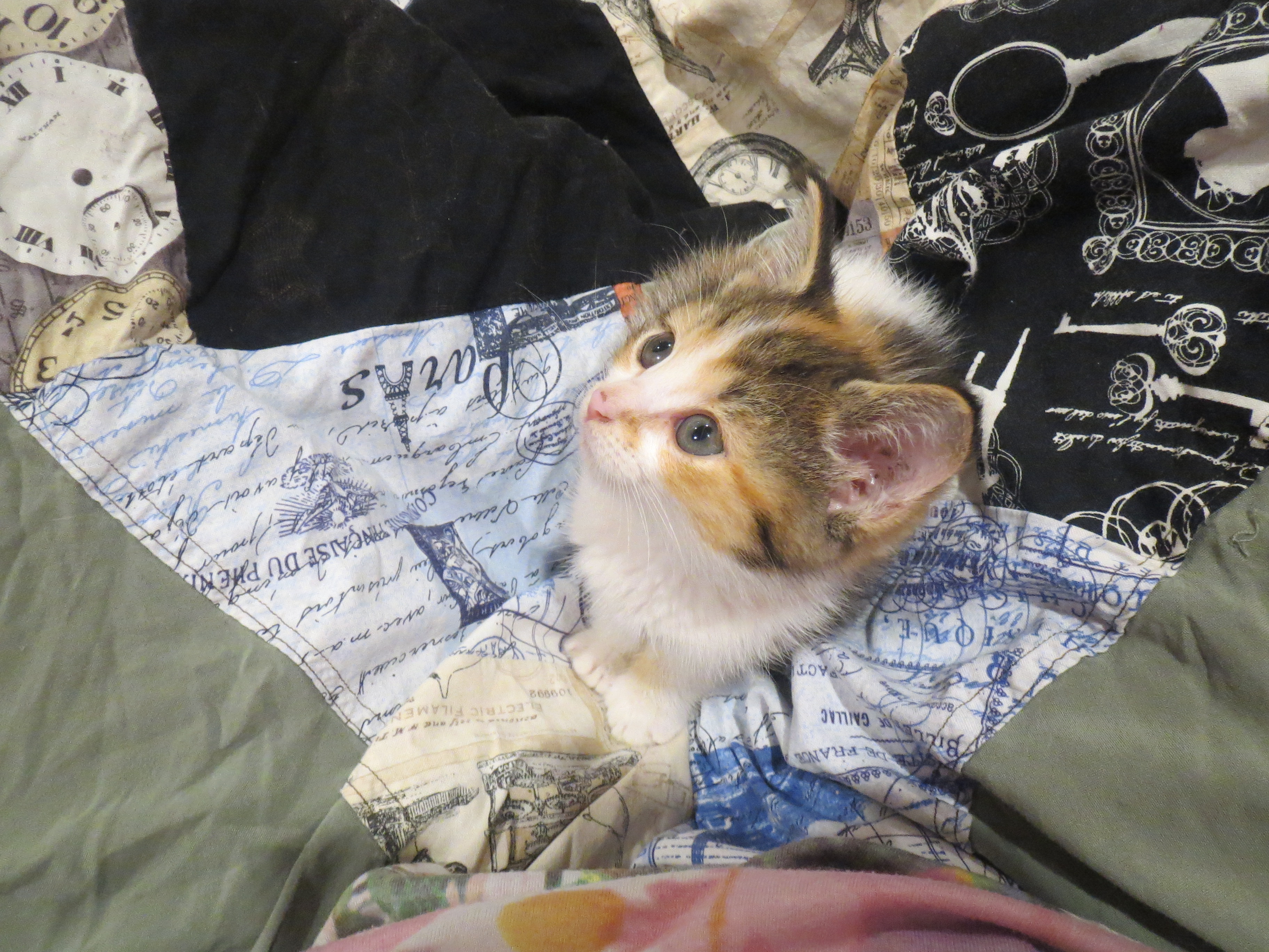 I find that kittens who are 4-6 weeks old when they are rescued tend to decide within 24 hours that I am their mother, and all they want is to be near me (but they may not be great at cleaning themselves). They often accept all humans once they’ve accepted one. Kittens who are 6-8 weeks old take longer to accept me, and are not as devoted to me. If they come into care when they are over 8 weeks old (and haven’t already had positive human interaction), they are likely to remain wary and shy of new people for their whole lives. However, that can also mean that they don’t get underfoot as much, and are more careful not to scratch humans.
