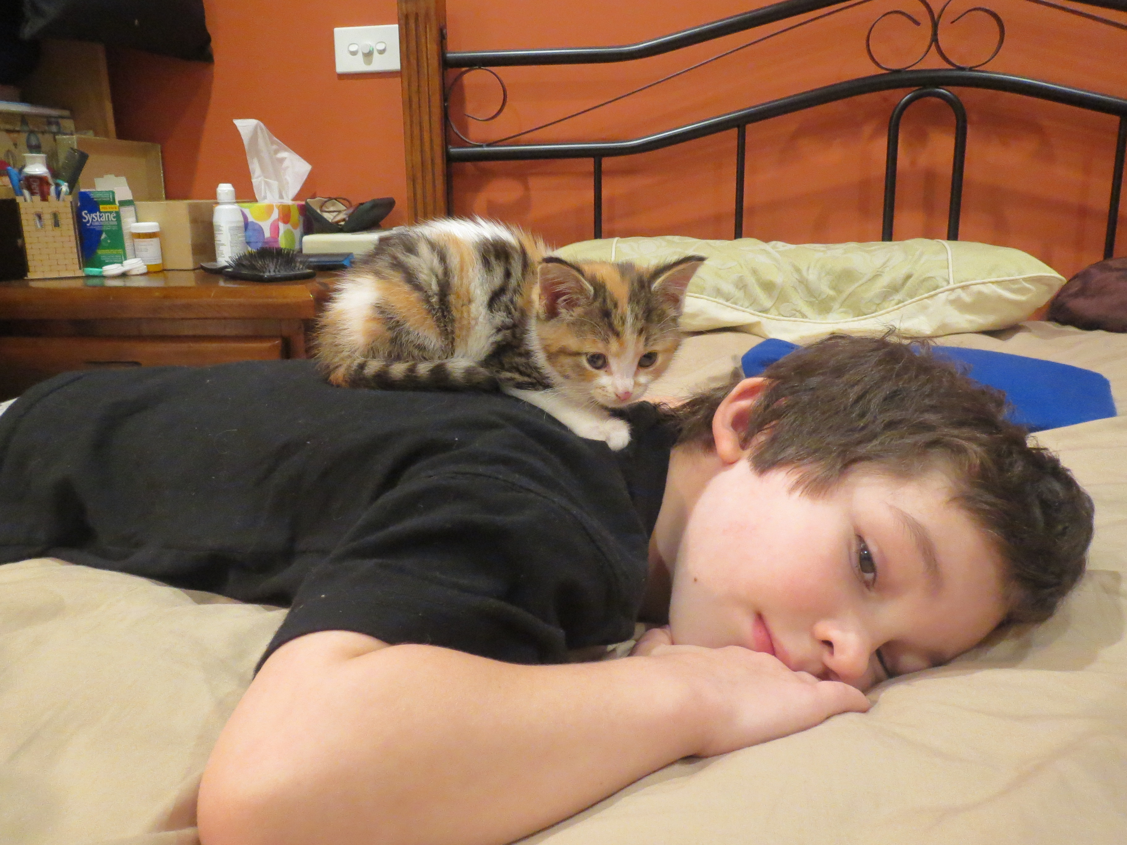 My obsession with cats and especially kittens has remained a constant my whole life, and the experience of fostering Buttons, while often difficult physically (cleaning, even the lightest possible cleaning, is quite painful for me), was also fascinating and delightful. So perhaps it is worth doing again.