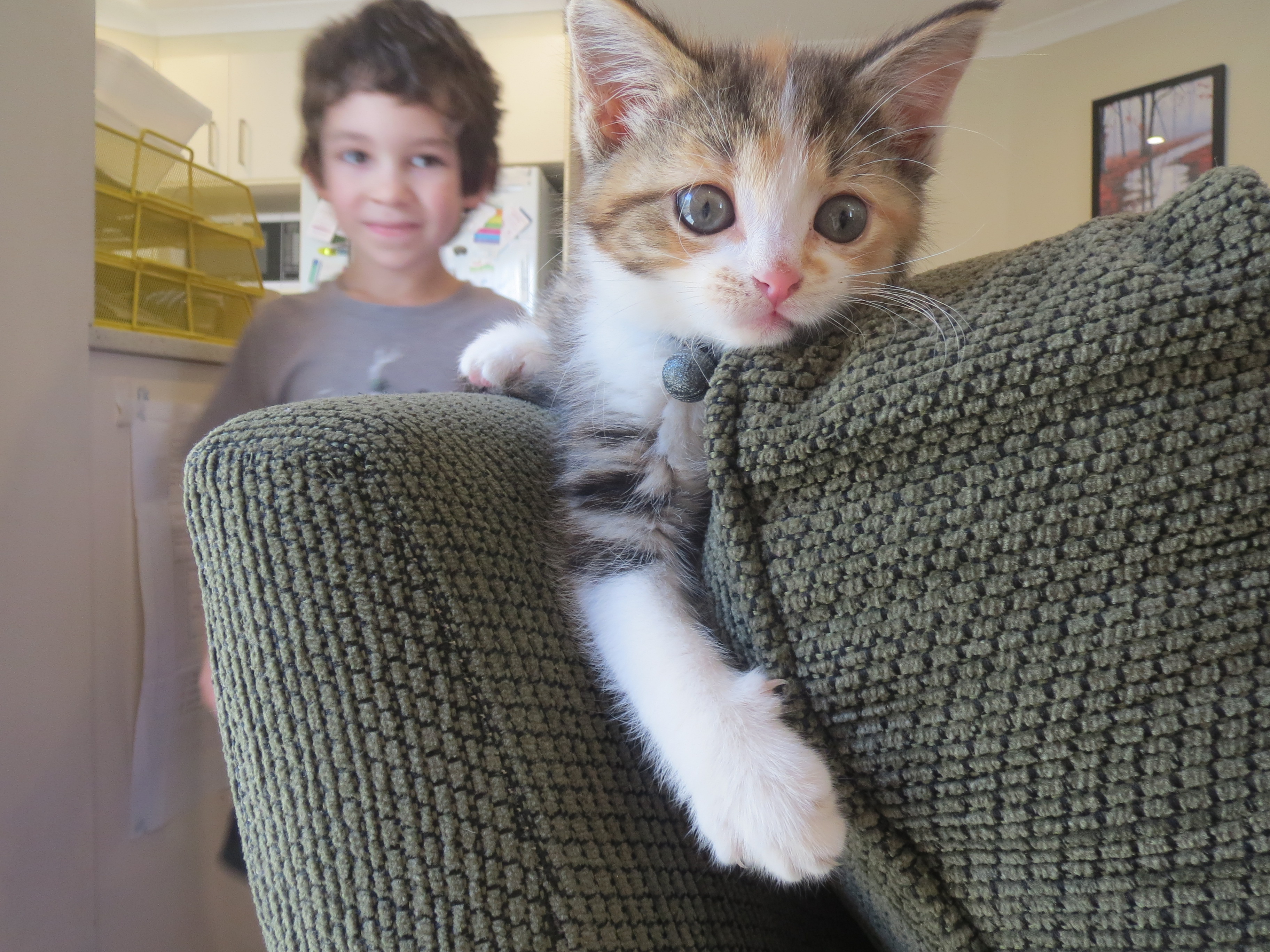 So. Allow me to continue giving unsolicited (and now hypocritical) advice: be very careful about adjusting a kitten’s food slowly. Make sure you get the closest possible equivalent to their usual food, and feed it to them at the same time/s they’re used to. When switching food from one kind to another, put in just a tiny bit mixed with their usual food and then gradually change the ratio over several days (assuming all goes well). And remember to closely observe the cat’s litter tray activities. Because poo is, throughout a cat’s life, almost always the best indicator that something is wrong. (I know I’ve talked about poo a lot lately—trust me, your vet will ask you about it every visit.)