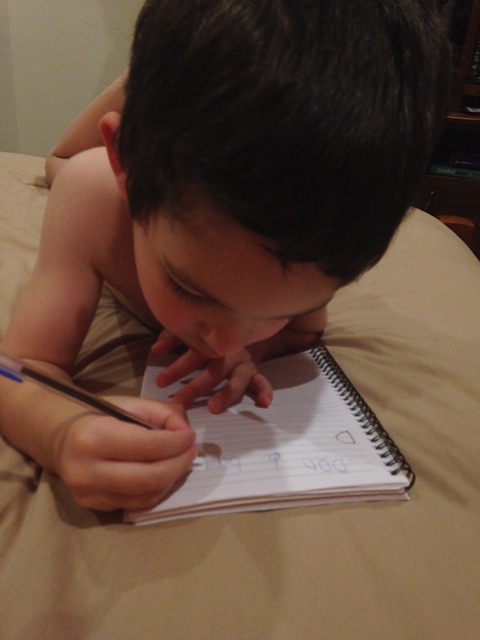 Here’s TJ looking impressively academic as he does a spelling test (“Don” and “bed” was the entire test).