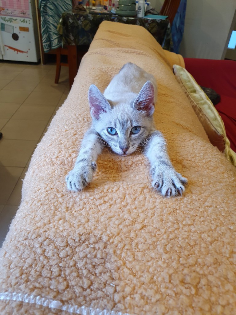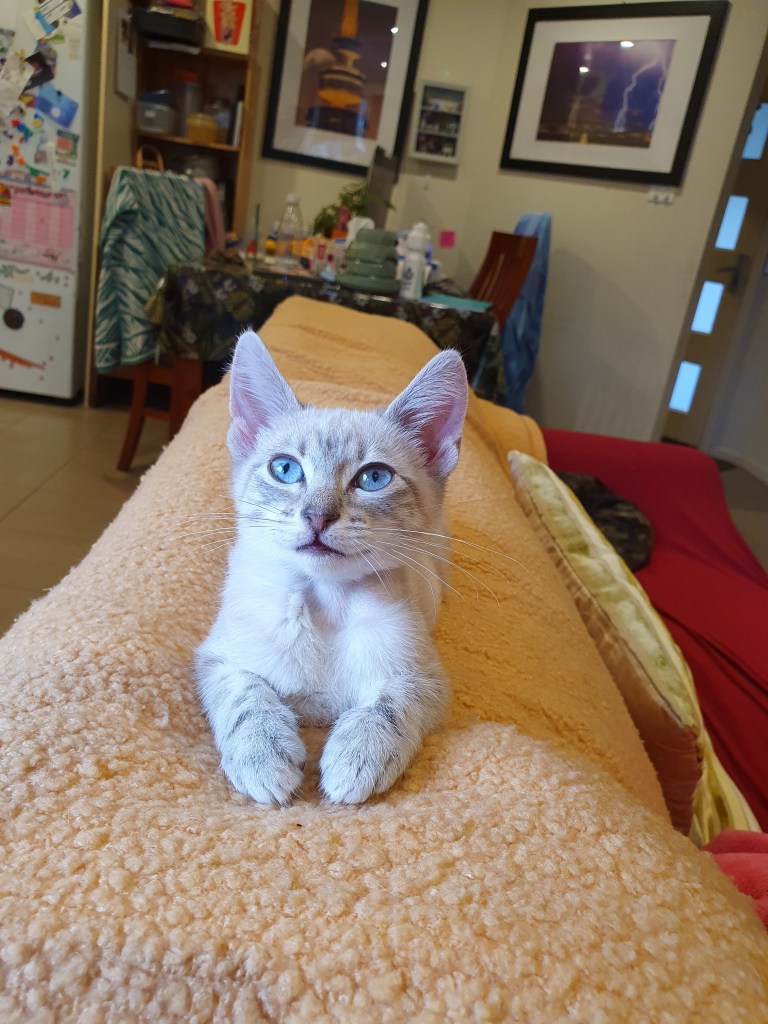 She was adopted by a retiree who had cared for her previous cat for twenty-three years despite the cat’s health being poor for several years. So Cloud now has a devoted personal handmaiden… and that is precisely what she requires.