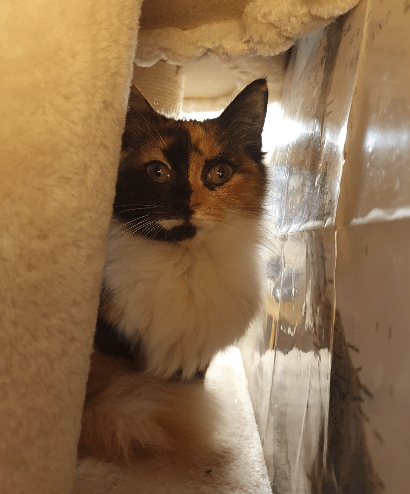 Dawn was finally adopted in August… and then she was un-adopted, as her new owners discovered one of them was allergic to cats. Fortunately she quickly found another home, and is now settled in happily.