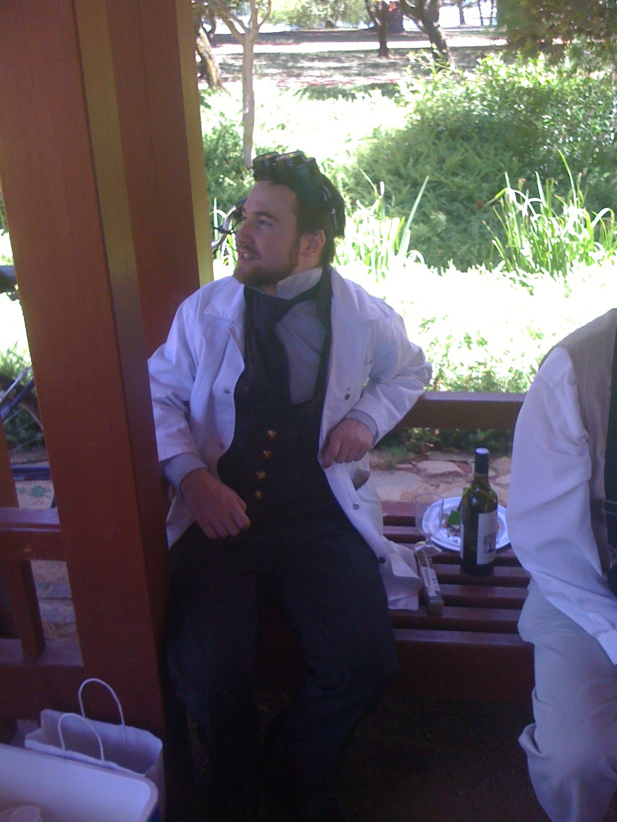 Here’s another stellar example of a steampunk birthday party. The first picture is me.