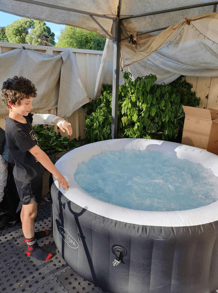 It’s a blow-up spa, the cheapest on the market (under $600 from Bunnings, plus electric and chemical supplies which were about another $200), and it is surprisingly good!